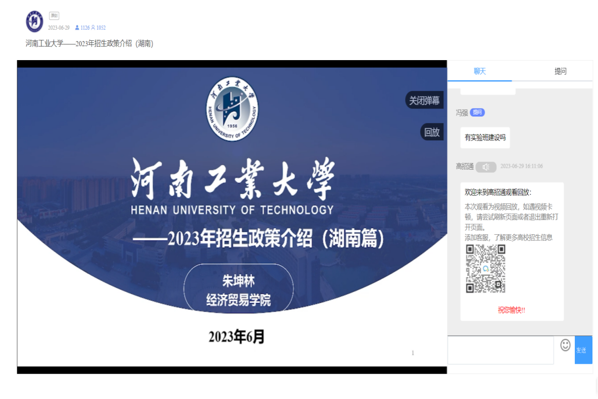 湖南教育博览会暨全国高校招生咨询会汇集了500余家国内外高水平院校到会参展。星空体育 从2019年开始,已经连续五年参会。本次招生宣传采取了线上线下相结合的方式,招生宣传团队于6月25-27日在第十四届湖南教育博览会开展线下招生宣传,于6月29日在线上进行湖南专场招生宣传——“2023年招生政策介绍(湖南篇)”。星空体育 在驻马店的招生宣传工作也已经持续多年,招生宣传团队分别于6月28日、6月29日参加了2023年河南省高校招生咨询会(上蔡专场)、驻马店高中2023年高招咨询会。