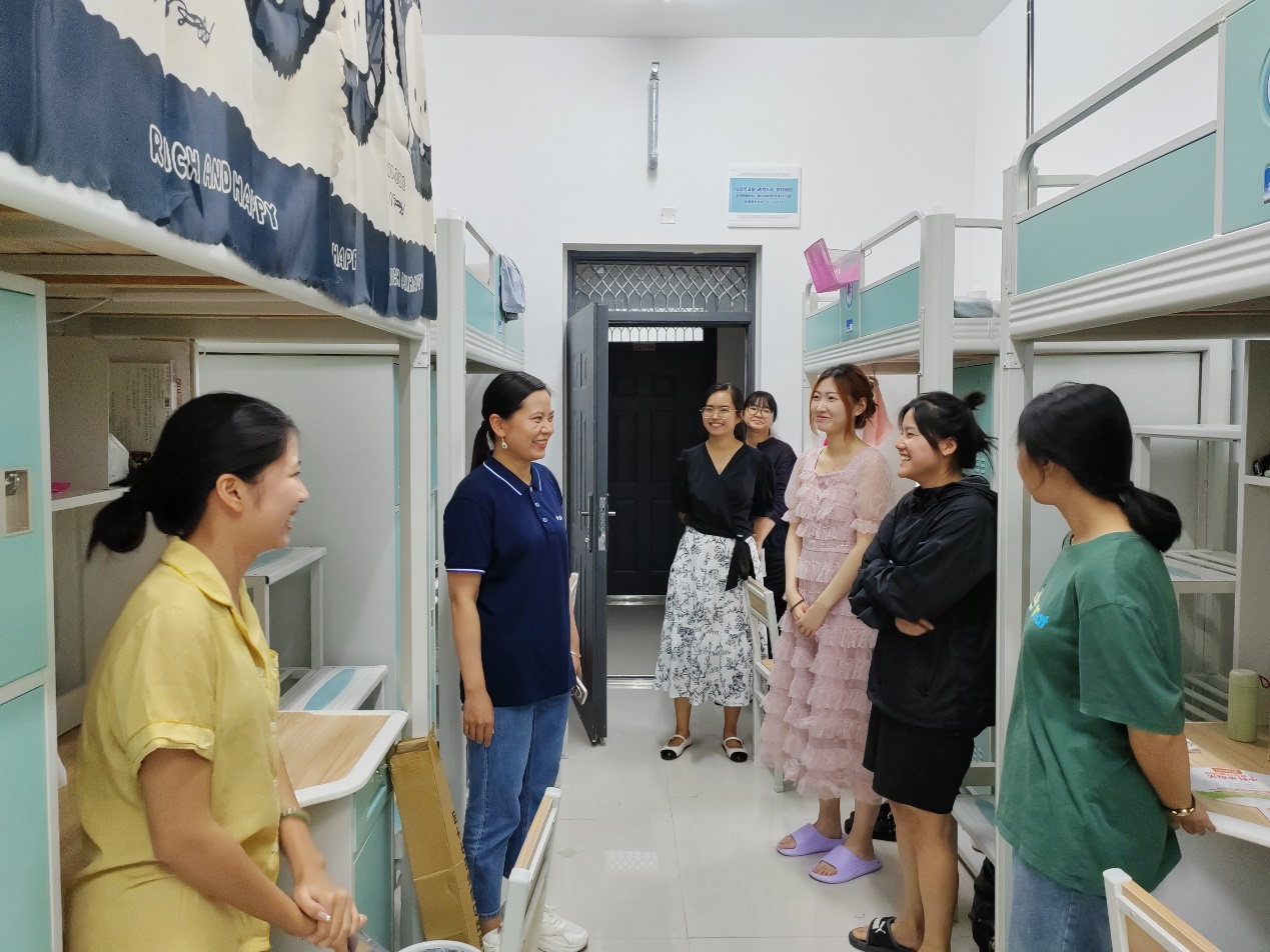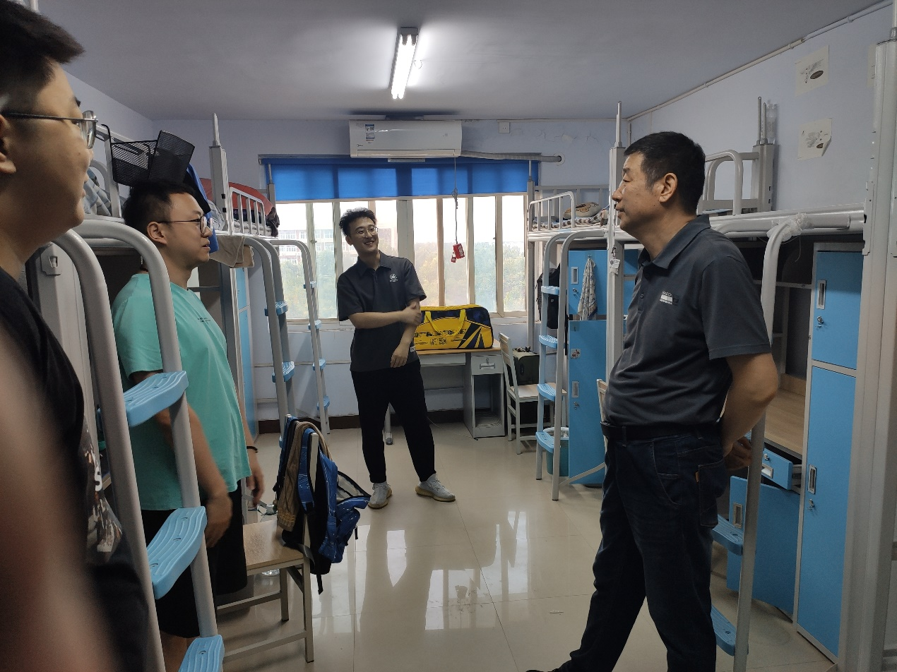 党委书记李刚、党委副书记岳鹏珍带领全体辅导员深入宿舍走访看望2023级研究生新生,询问新生生活安顿情况,解决实际困难和所急所需,全力为新生的学习生活保驾护航。
