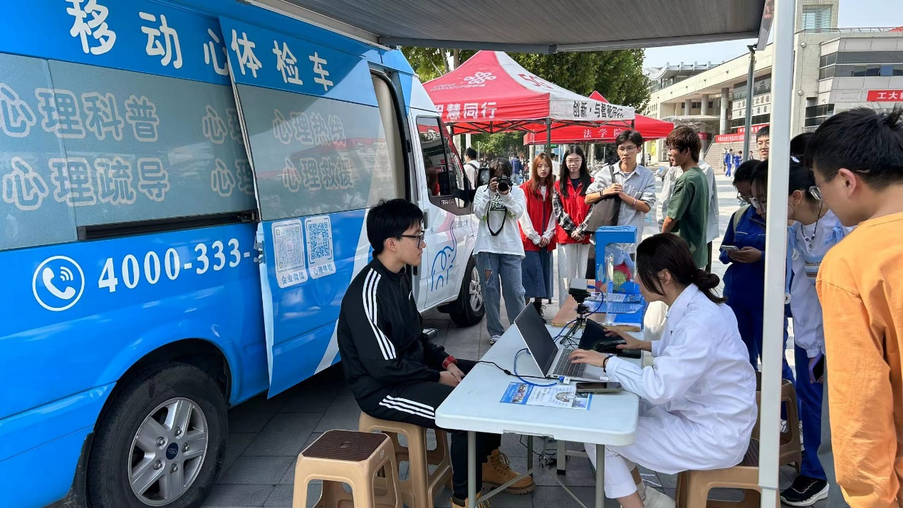 和社会机构的合作,为学生心理健康保驾护航。本次活动包含心理体检、心理科普、心理团辅活动等环节,并引入大象心理移动心理体检科技健康车,实现方便快捷全方位地评估学生心理健康状态。