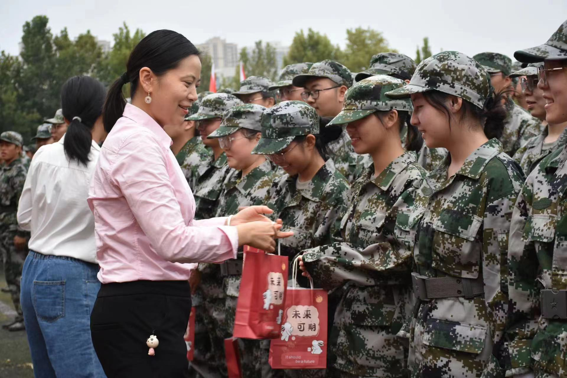 精心准备的慰问品,并预祝全体22级学生在军训中都能有所收获。