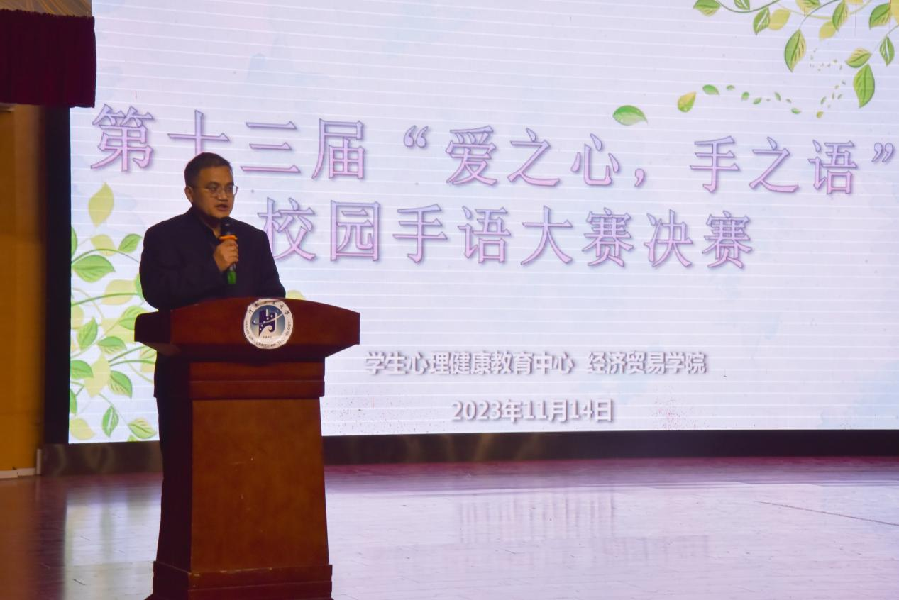 经过初赛和复赛的层层选拔,共12支队伍进入决赛。薛中海作赛前致辞,他对顺利进入决赛的代表队表示祝贺,对负责筹办此次比赛的全体工作人员表示感谢,希望同学们通过手语大赛传递乐观积极精神、感受团队的支持与力量,并预祝本次活动圆满成功。