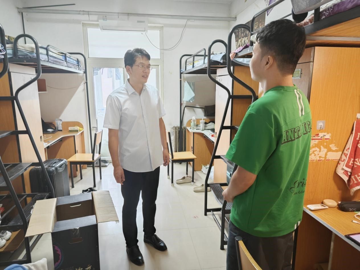 随后,岳鹏珍和程晓林分别带领新生辅导员和学生干部到新生宿舍慰问走访。他们询问新生生活安顿情况,解决实际困难和所急所需,全力为新生的学习生活保驾护航,并叮嘱学生注意宿舍用电安全、防范电信诈骗、做好学业规划,充实校园生活。