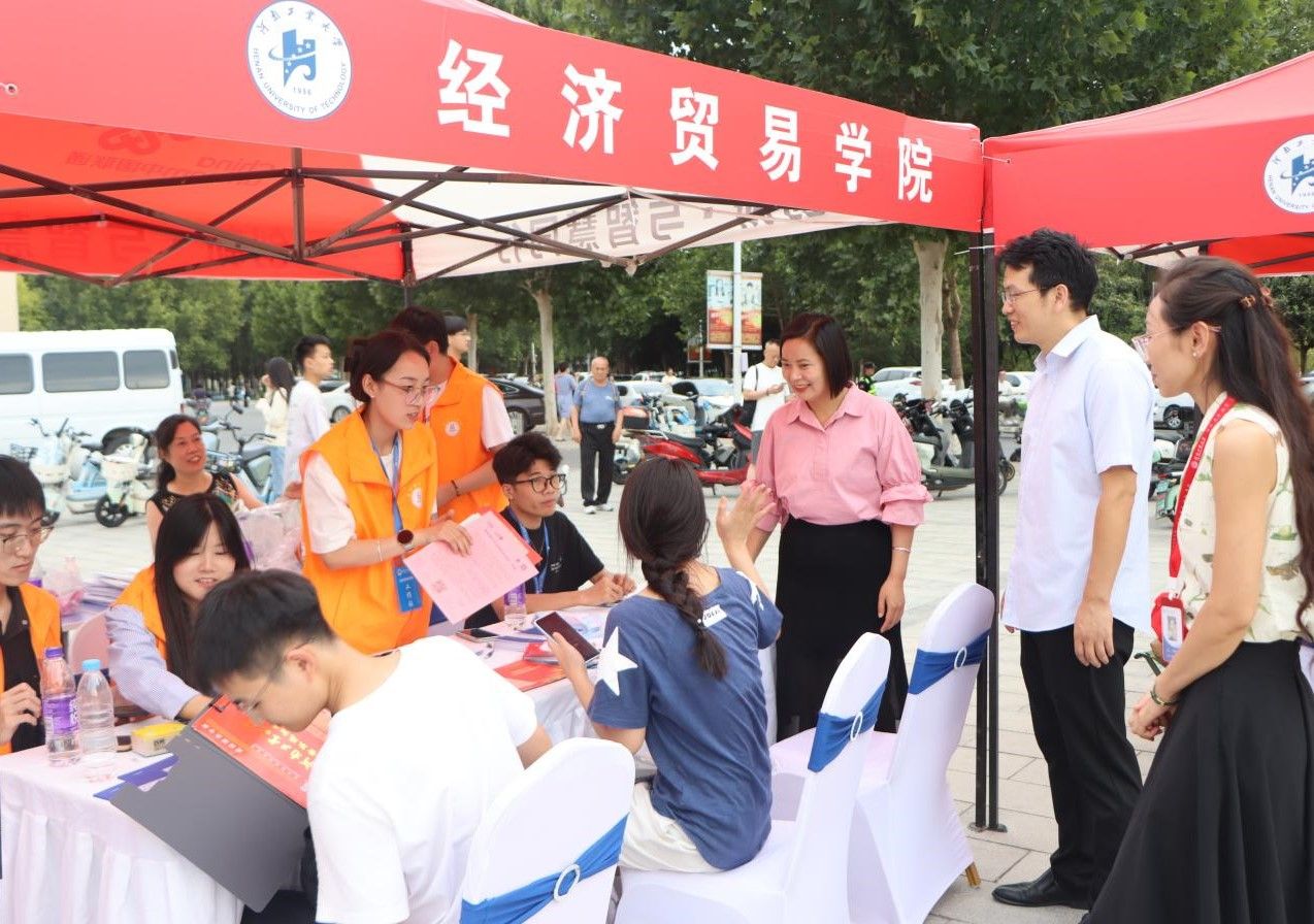 副院长程晓林和党委副书记岳鹏珍与报到新生亲切交流,欢迎他们加入工大星空体育
