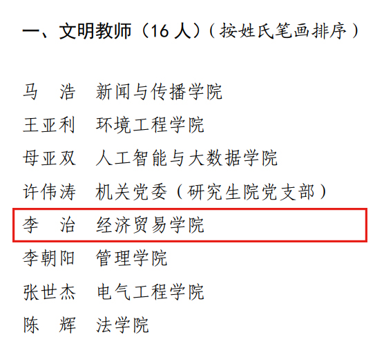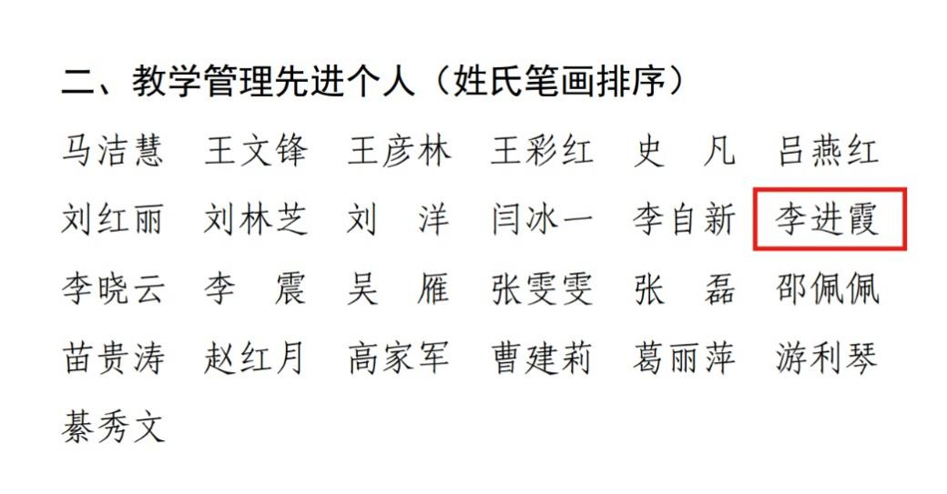 近日,全校开展了“两创两争”(创文明班级宿舍、社团,争当文明教师学生、网民)活动先进集体和先进个人评选推荐工作,经过评审星空体育 李治老师荣获星空体育 2023年度“文明教师”,并作为候选人推荐参选省级“文明教师”评选。在星空体育 开展的2022年度教学管理先进单位和教学管理先进个人评选活动中,星空体育 李进霞老师荣获星空体育 “教学管理先进个人”荣誉称号。(星空体育 撰稿/张福勇 审稿/李刚)