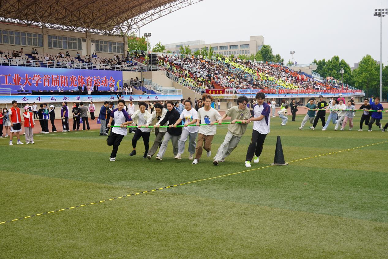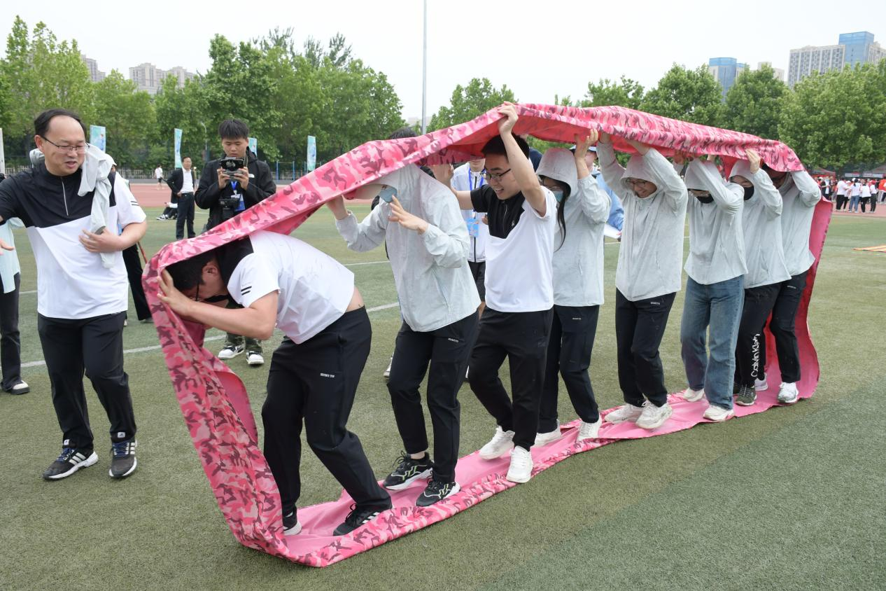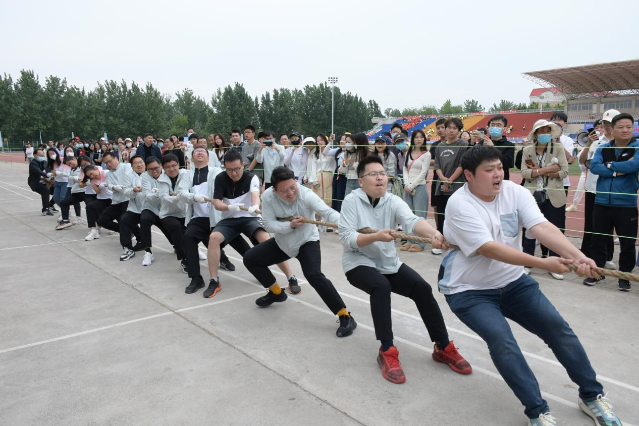 教师们精神抖擞,力争上游,充分展示了奋力笔耕之外的阳光和豪迈。先后进行了拔河、无敌风火轮等多项趣味运动,教职工们齐喊口号,凭借着自己的实力和团队协作,尽情投入到团体竞技中去,在趣味昂扬的赛场上也能展现别样风采。赛场外,一次次手持棒的碰撞,一声声独具特色的口号呐喊,一阵阵掌声雷动,尽显经贸学子的高昂热情,为赛场上的老师和同学们注入了满满的能量。
