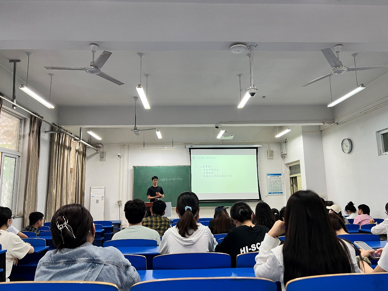 分享会伊始,保研至首都经济贸易大学的刘新芳同学基于自身保研经历,从平时专业课学习、应用英语训练以及保研过程中个人文书材料撰写、目标院校选择等方面分享了宝贵的保研经验;考研至南京林业大学的何钰龙同学分享了个人考研后期到调剂的心路历程、考研过程可能出现弯路时的心态管理、参考目标院校官网的师资队伍及硕导研究方向确定目标院校等方面的珍贵经验;考研至东北财经大学的弓震洋同学从复习过程中制定复习知识思维导图、试题失分点Excel表格排查、任务日清周清习惯等方面分析了一些比较好的学习方法;考研至长沙理工大学的李盼盼同学从个人优势及不足、考试科目选择、个人兴趣等方面分享了自身跨考经验,从艾宾浩斯遗忘曲线记忆法、思维导图等方面分享了专业课复习方法。工作签定宇通集团的李佳运同学从规划工作岗位筛选、简历制作、求职途径选择、笔试及面试准备、单位甄别、工作签定等方面分享了十分宝贵的就业经验。