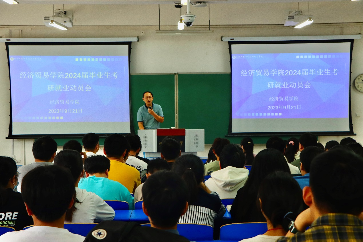 在博识楼3209教室召开2024届毕业生考研就业动员会,副院长李文启、朱坤林,学工办主任李振宇及星空体育