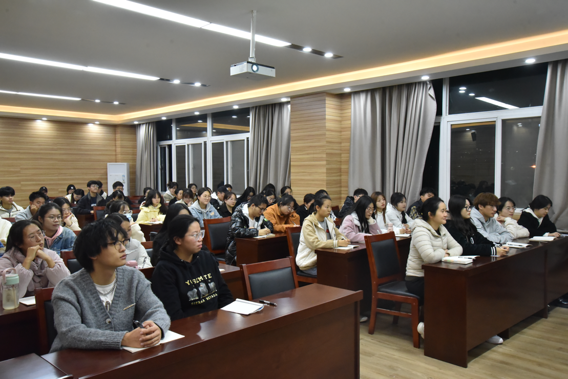 在3605会议室举办入党积极分子培训班第六讲暨第十三期“易创家”读书会活动。会议特邀校党委正处级组织员陈从志为主讲嘉宾,辅导员何亚萍及第39期全体入党积极分子参加了此次会议。会议由院党委副书记岳鹏珍主持。
