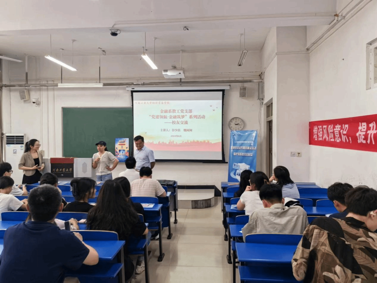 6月18日下午,金融系教工党支部精心策划并成功举办了“党建领航·金融筑梦”系列活动之校友经验分享与职业规划交流会。会议由金融系教工党支部书记刘变叶主持,金融系教工党员以及金融专业21级、22级的部分学生踊跃参与,共同聆听和学习了来自行业专家的宝贵经验。