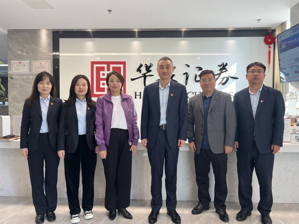 产学研实践教学基地华安证券河南分公司进行实地调研。华安证券河南分公司第二党支部支部书记、商都路营业部总经理许鲁南,党总支组织委员桑晓青,第二支部组宣委员李静茹、商都路营业部团队主管党晓占一行热情接待并参加了会议。