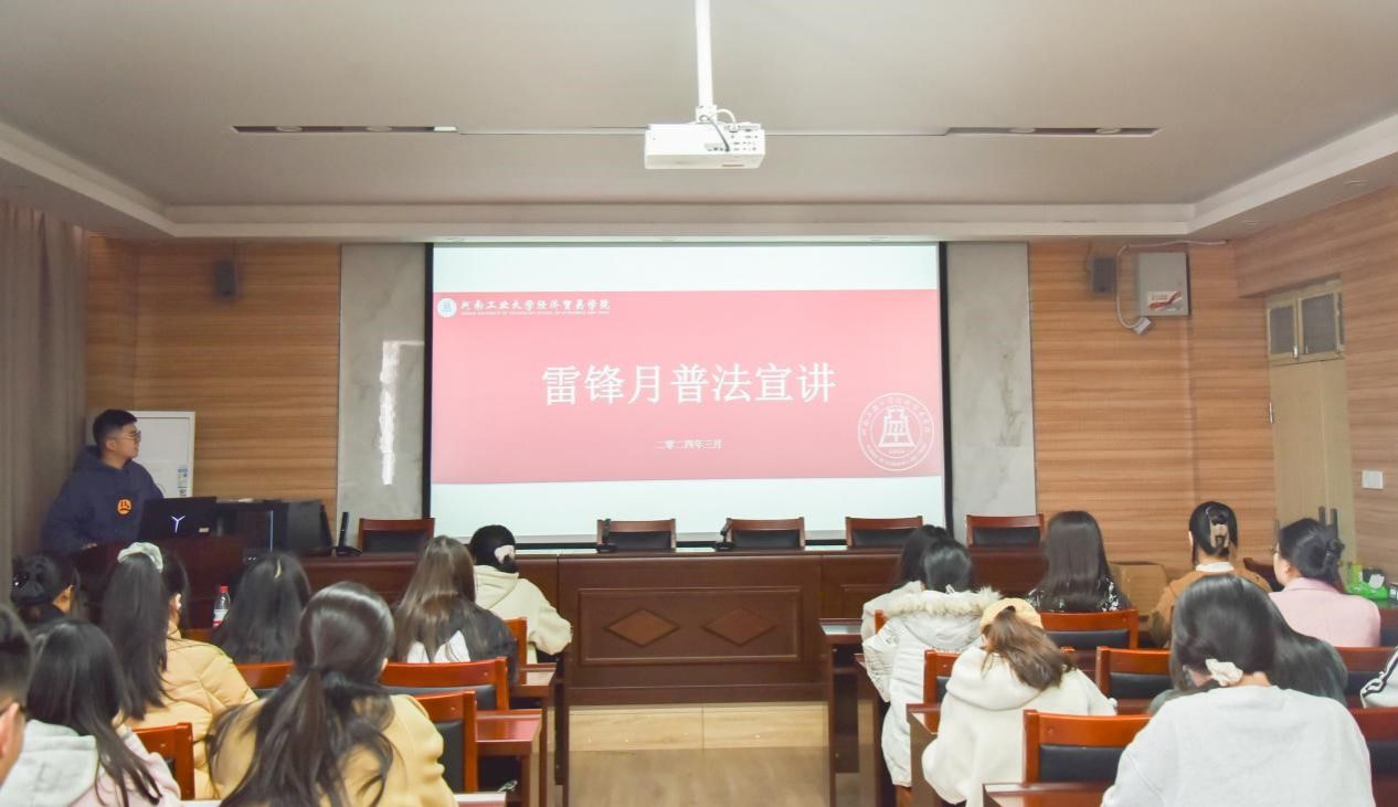 雷锋月普法活动结合学科优势,组织学生在3605教室围绕金融相关法律、经济法等法律条款等内容开展普法宣讲会。