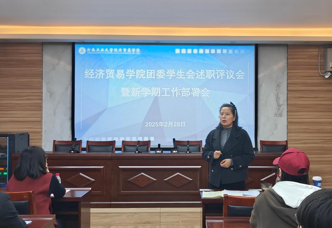 在博识楼3605会议室召开第二十六届学生会述职评议会暨新学期工作部署会。院党委副书记岳鹏珍、全体辅导员以及全体学生会干部参与此次会议,会议由院团委书记王秋瑾主持。