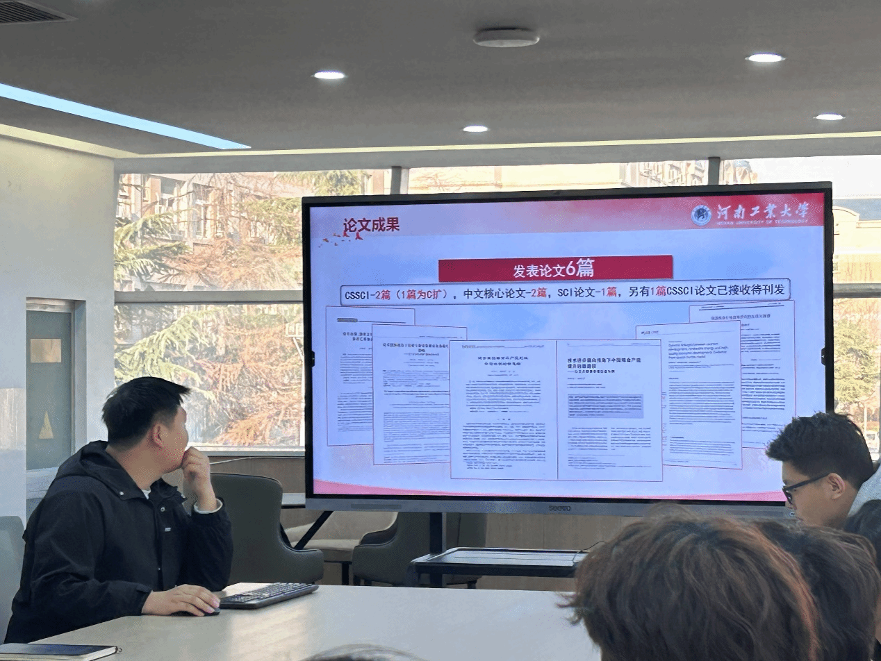 在答辩环节,优秀学生代表杨传宇以从学术论文撰写为切入点,拆解其发表6篇论文(含5篇核心期刊)的科研方法论,他详细阐释了从选题、数据建模、论文撰写再到投稿的完整科研链条,为低年级学生提供了从选题到成果转化的完整路径参考。金怡兴则分享了双创竞赛的相关经验,复盘其组建跨学科团队斩获国家级奖项的实战经验,强调“教师指导+多维实践”的成长公式的重要性。