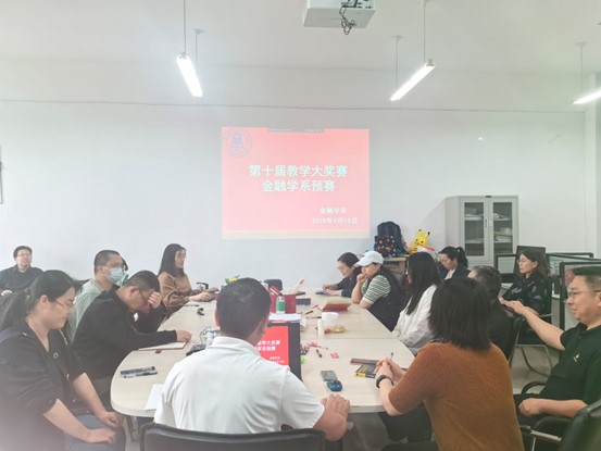 第十四届教学大奖赛实施方案》部署要求,4月15日下午,金融学系在3416开展了教学大奖赛系室预赛教研活动,全系教师参加了本次会议。会议由金融学系主任宋博主持。