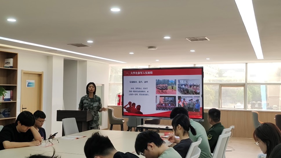 会议以“青春献国防,共筑强军梦”为主题,围绕征兵流程、报名条件、体格检查、政治考核等环节进行了详细解读,并重点讲解了大学生入伍的学费补偿、升学优惠、就业扶持等优抚政策。通过真实的数据和案例,直观展现了军营生活对个人成长的淬炼价值,引导同学们将个人理想与国家需要相结合,在绿色军营中实现人生价值。随后,退役大学生代表分别分享了自己从校园到军营的蜕变经历和军旅生涯的点滴,激励学弟学妹们勇敢接过“强国一代”的接力棒,用青春和汗水书写无悔担当。