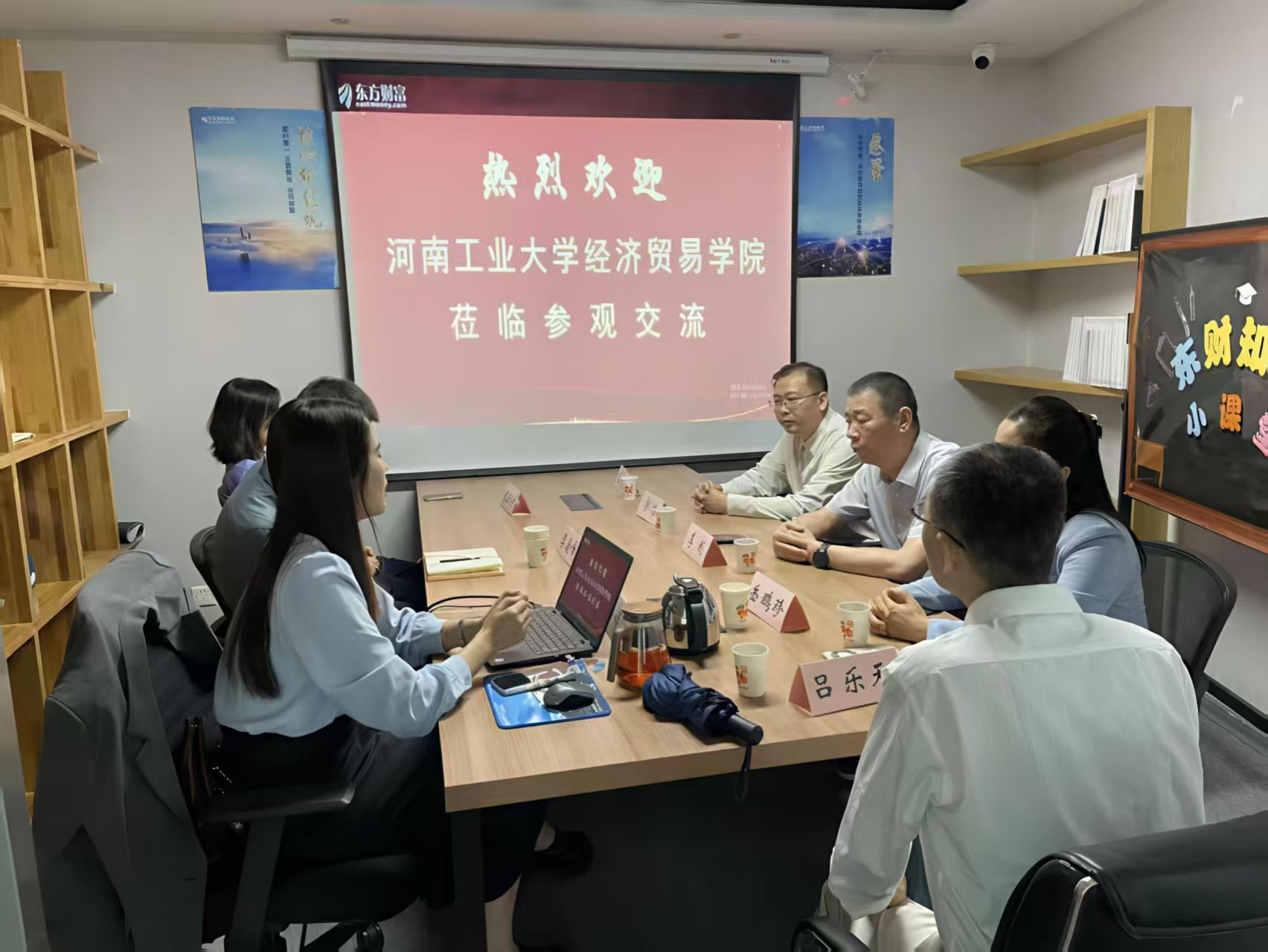 党委书记李刚、副书记岳鹏珍、副院长郭力、金融学系主任宋博、教师代表吕乐天与东方财富郑州桐柏路营业部总经理李海峰、高校业务区域总管李思婷等出席了签约仪式。