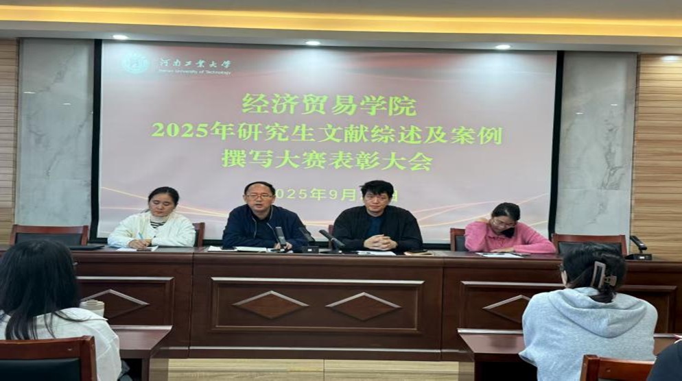 在博识楼3605会议室举行2025年研究生文献综述及案例撰写大赛总结暨表彰大会。副院长程晓林主持会议,院长李文启、评委代表何亚萍、张维洁出席,获奖学生及2025级全体研究生参加。