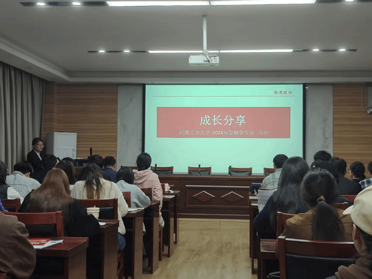 牧原股份于博识楼3605开展2026届原料采购方向秋季校园招聘宣讲会,毕业班辅导员张瑞玲、陈娜娜以及2022级本科生和研究生积极参与此次活动,会议由院党委副书记岳鹏珍主持。