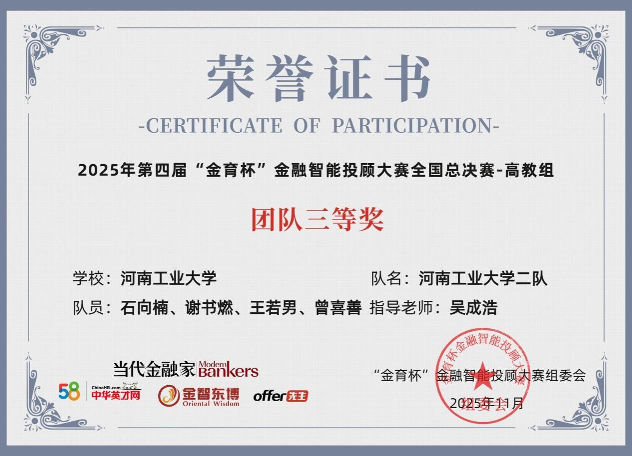 近日,第四届“金育杯”金融智能投顾大赛全国总决赛圆满收官。作为全国性金融人才竞技平台,本次大赛由《当代金融家》杂志社主办,金智东博(北京)教育科技股份有限公司、中华英才网、offer先生联合承办,全国130多所院校、近4000名学生入围全国总决赛。星空体育