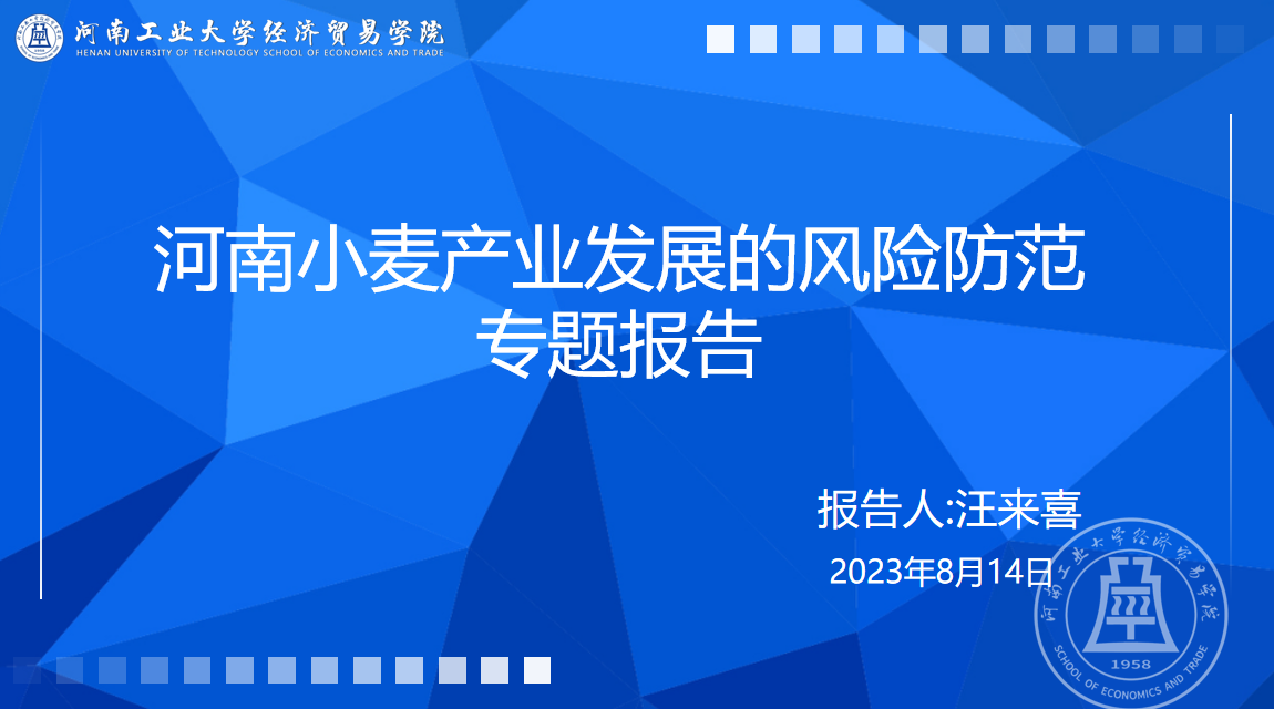 副院长汪来喜受邀到河南省农业信贷担保公司做报告,公司总部机关全体人员在现场听取报告,公司省内14个区域办事处的员工在线上听取了报告。汪来喜副院长报告围绕河南小麦产业发展的风险防范这一主题,从世界粮食、中国粮食、河南省粮食等几个维度对河南省小麦产业发展予以了透视分析,分析河南省小麦产业发展的成效和存在问题,分析俄乌战争、“烂场雨”对小麦生产及价格的影响,提出利用农业保险防范风险的对策,报告得到了公司领导和全体员工高度评价,公司总经理刁玉新总经理对汪来喜副院长到公司做报告表示感谢。
