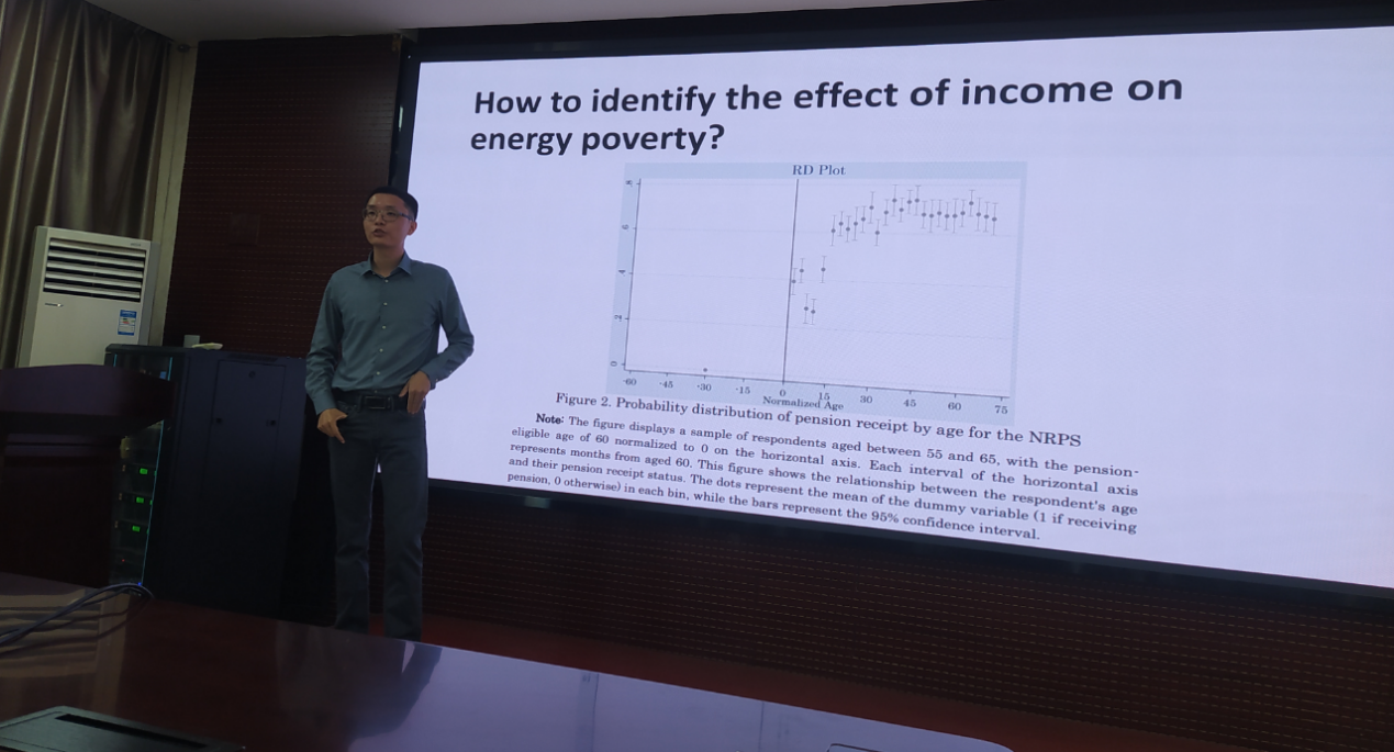 李江龙教授分享了题为“Reducing energy poverty by nearly universal pension coverage of rural China”的工作论文,探讨了新型农村社会养老保险(NRPS)政策对农村家庭能源消费的影响。李教授首先从农村地区能源贫困的诱发原因、政策背景和现实状况等方面阐述了论文的选题依据,其次从能源贫困发生原因及造成影响、新农保覆盖对农村居民用能行为影响和农村家庭能源消费行为三方面进行文献述评,再者利用均衡模型揭示农村居民收入变动对传统能源和现代能源消费的影响,进一步介绍了论文的变量指标、实证结果、稳健性检验和机制分析内容,最后总结研究结论和政策启示。在互动交流环节,星空体育