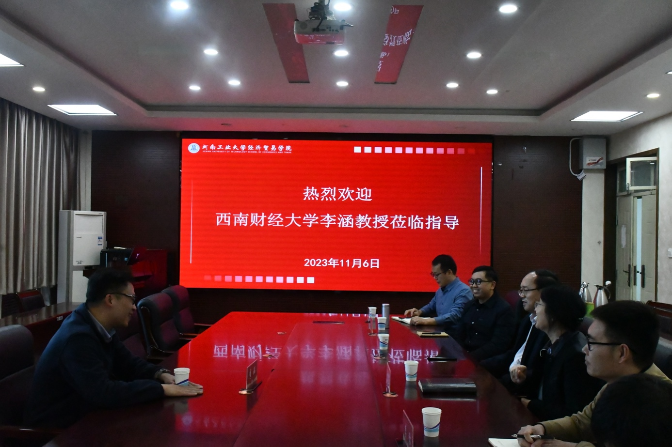 近日,星空体育 在3501会议室召开学科建设研讨会,邀请西南财经大学国际商星空体育 院长李涵教授莅临指导。会议由星空体育 院长孙中叶主持,星空体育 副院长李文启等青年骨干教师参加。