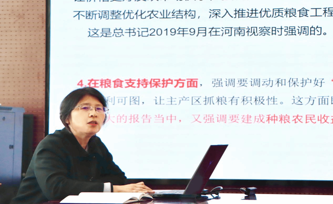 院长孙中叶以《贯彻落实习近平总书记重要论述,切实保障国家粮食安全》为题给全体干部作学习辅导报告。她从粮食安全的关键把握、战略定位、战略思想、战略举措、战略保障等五个方面,阐释了习近平总书记关于国家粮食安全重要论述的丰富内涵与实践要求。最后,孙中叶结合星空体育