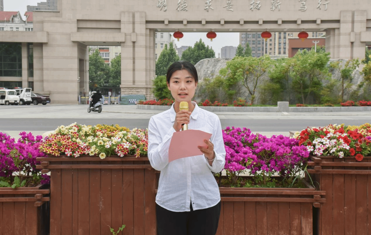 升旗礼毕,国贸2201班于欣路作为学生代表在国旗下分享了自己的青春感言。她讲述了作为新时代青年自己如何以实际学习践行五四精神,号召全体青年不负党和国家的嘱托和希望,于人生定向之时立鸿鹄之志,让青春之花绽放在祖国最需要的地方,在实现中华民族伟大复兴的接力跑中,跑出青春的精彩。