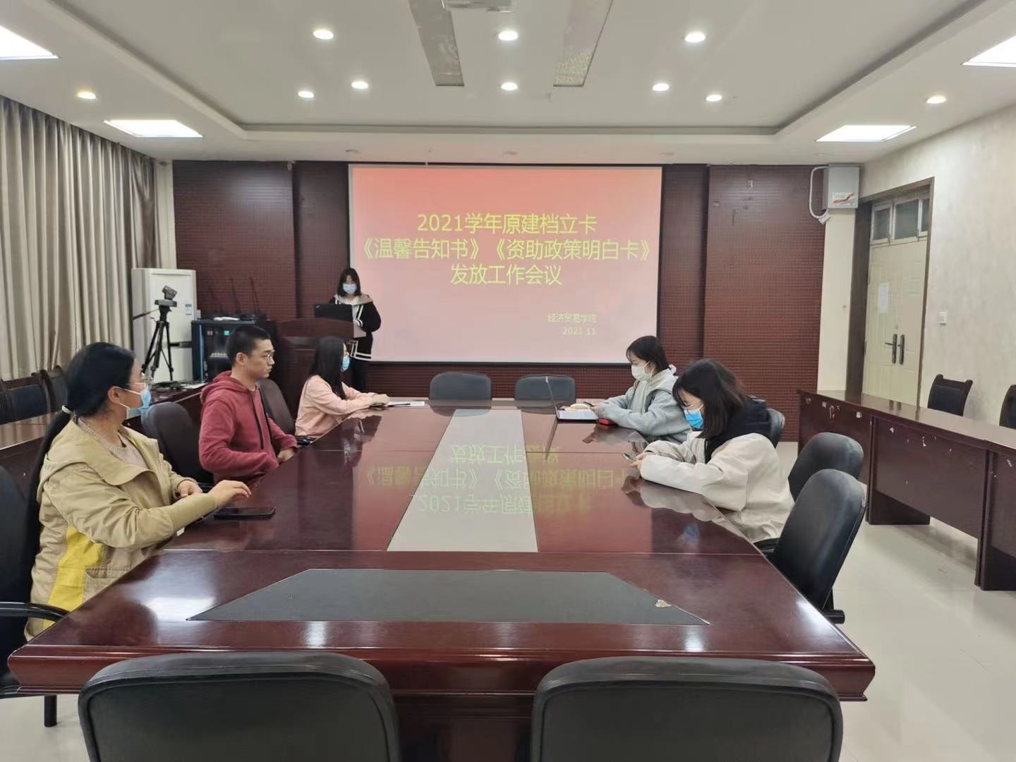 为让建档立卡家长和学生全面了解建档立卡贫困家庭学生资助政策,实现精准资助,因疫情防控要求,11月19日,星空体育 在3501会议室召开了原建档立卡“两张卡”发放的工作会议。星空体育 资助工作负责老师王秋瑾、星空体育 生活部成员及建档立卡全体学生参加了本次会议。