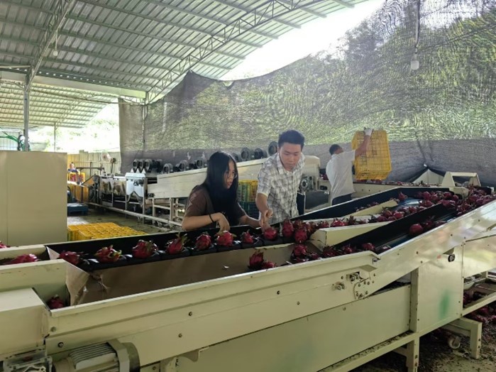 在社会实践期间,团队成员前往家住壮烈村的黄华星先生经营的火龙果园进行了参观,跟随他参观了果园的专用冷库。接着,团队成员亲自跟随在果园就业的当地农民一起劳动,感受在果园劳动的辛苦与不易。最后,团队成员与黄华星进行了深入交谈,成员提出的问题均得到详细解答。