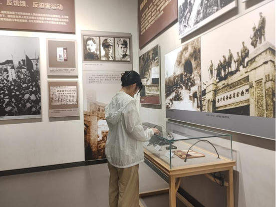 7月7日,团队成员前往中原英烈纪念馆。步入纪念馆,在庄严肃穆的氛围中,队员们认真地听讲解员讲述革命先辈们的英勇事迹和国家的发展历程。这里犹如一座神圣的历史殿堂,集中展示了抗日战争、解放战争、抗美援朝等各个历史时期的英烈事迹和伟大革命精神。每一个故事都如同重锤敲击着队员们的心灵。