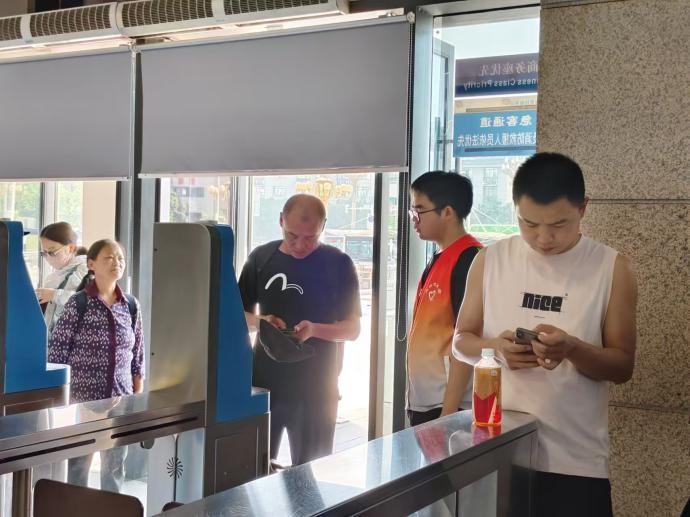 图 3志愿者在进站口组织旅客有序进站