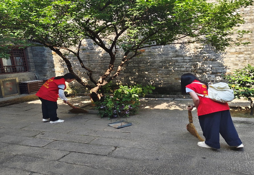 7月7日下午,团队成员朝着新县鄂豫皖革命旧址群重新出发。旧址群内,有很多陈旧的文物。望着这一件件旧物,团队成员不由得想到众多司令员在这里激烈讨论的场景。团队成员开始自发为旧址打扫卫生,以表示对先烈的敬重。