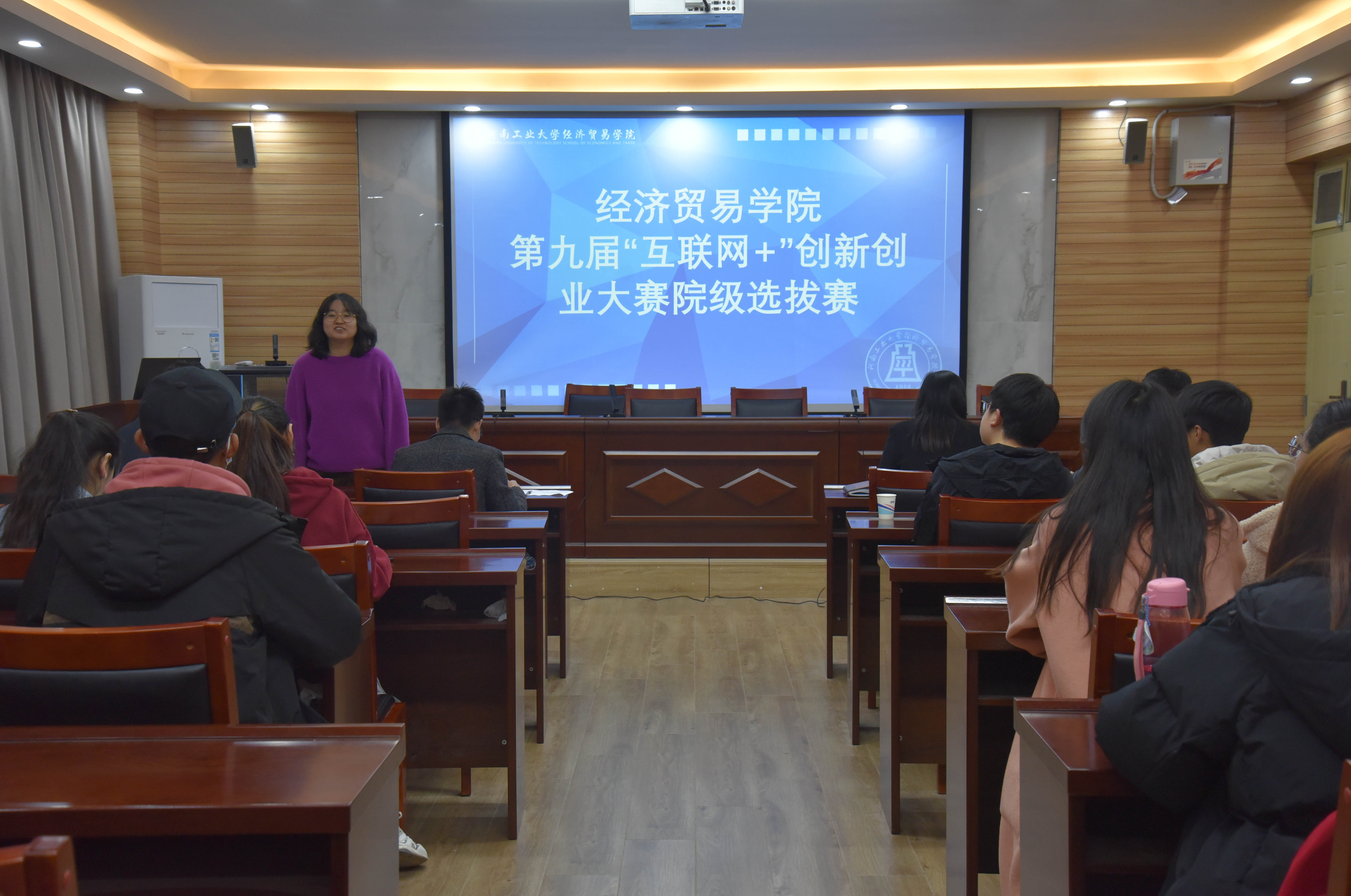在3605会议室举办第九届“互联网+”创新创业大赛院级选拔赛。院党委副书记岳鹏珍、“易创家”功勋导师翟书斌、关浩杰,李治及参赛团队成员参加本次选拔赛。比赛由院团委副书记王秋瑾主持。