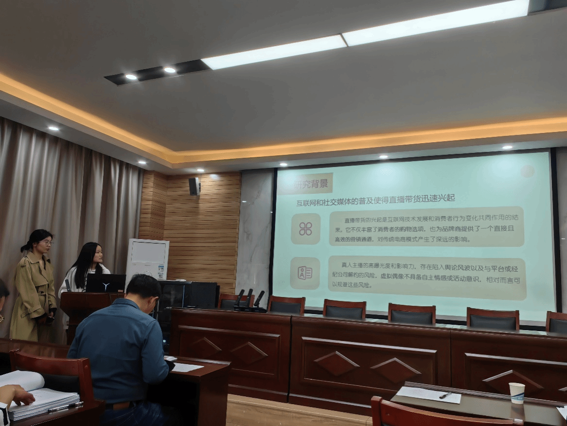 张福勇首先对本届参赛学生表现出的积极主动性表示充分肯定,同时强调了比赛的注意事项以及要重视的细节,要求参赛队伍细心修改作品内容和格式。随后,各参赛队伍依次进行答辩。参赛团队分别从选题背景、研究方法、调查方案设计及实施、实证分析、结论与建议等方面进行汇报。评委老师根据团队汇报情况,对参赛项目进行了详细点评,指出各团队的项目在内容、格式、题目等方面存在的问题,并给出针对性的指导和建议。