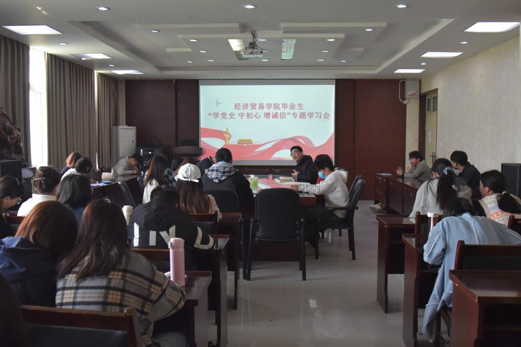 3501会议室召开“学党史 守初心 增诚信”专题学习会,院党委副书记王鹏,院学工办负责人李振宇以及2017级全体贷款毕业生参加了此次会议。会议由毕业班辅导员王秋瑾主持。