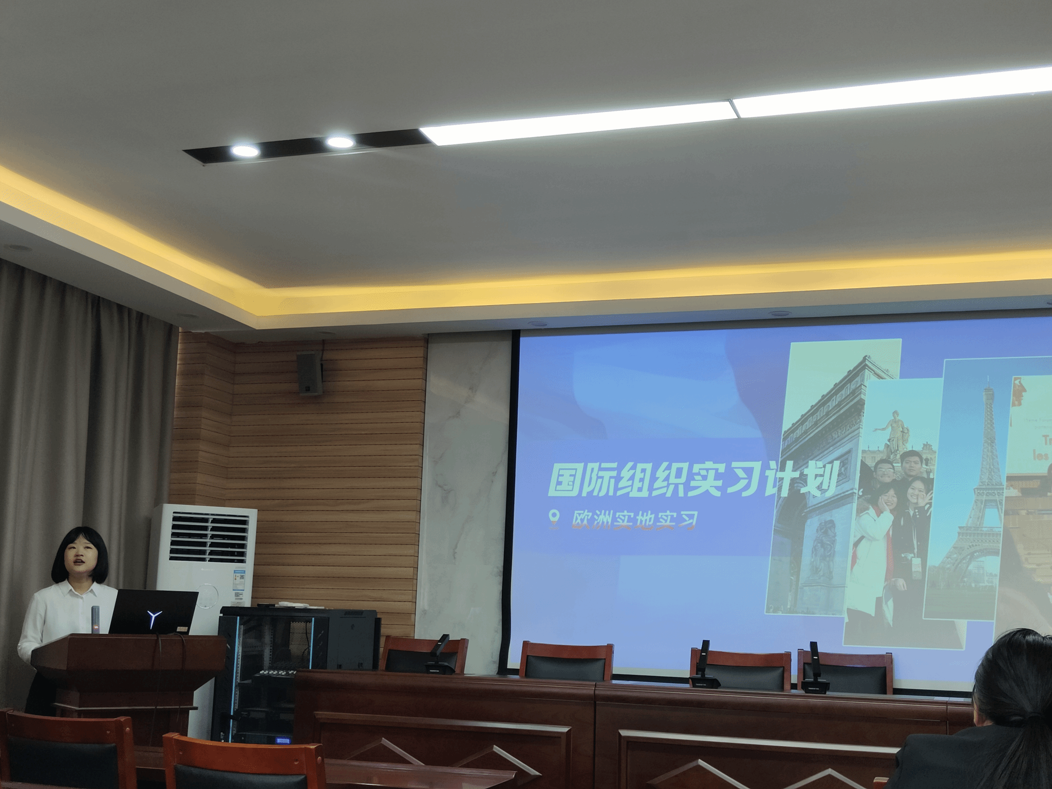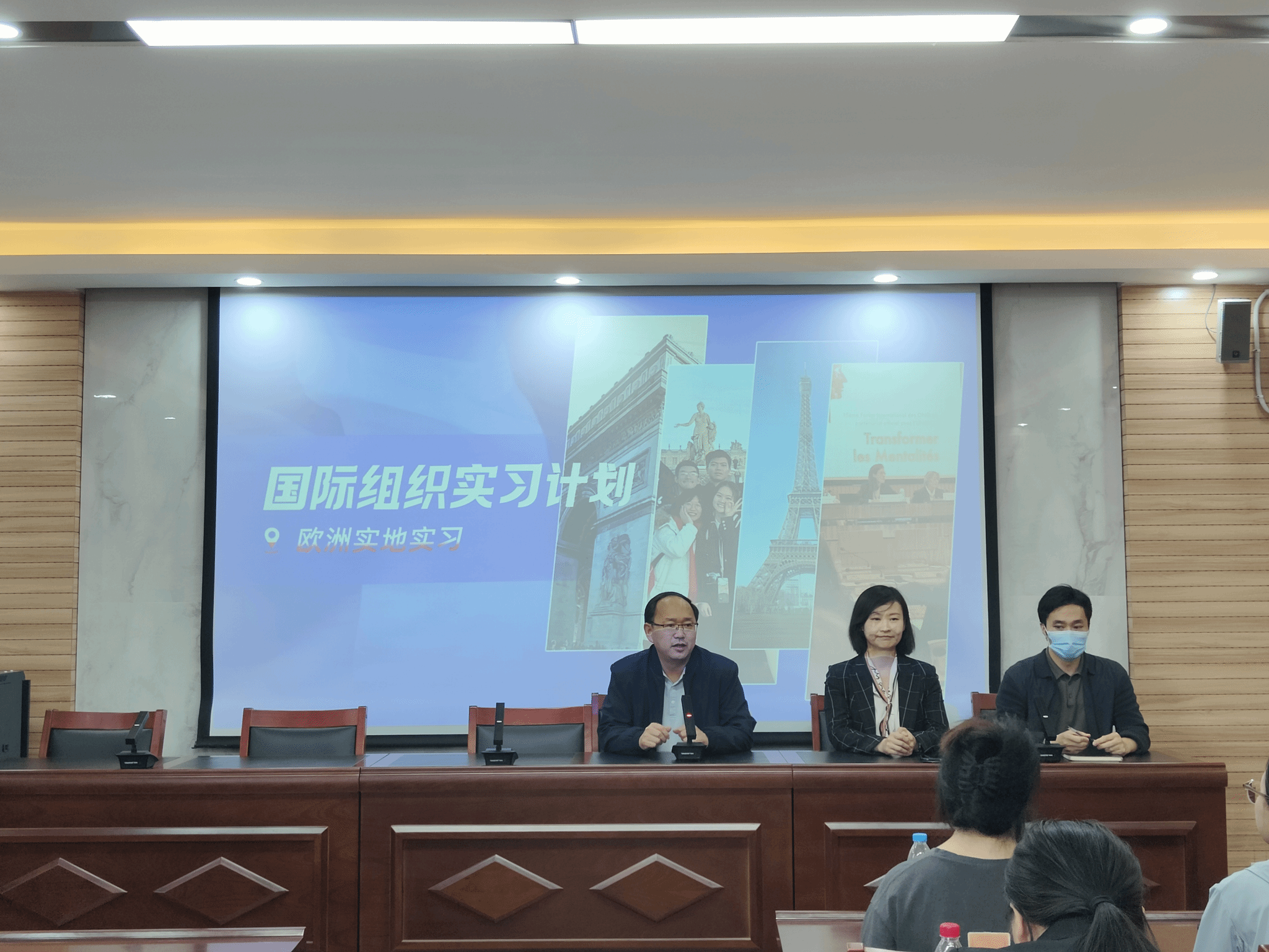 在3605举办国际组织实习计划宣讲会,国际交流与合作处张小鸥副处长出席,本次宣讲会由李文启副院长主持,GCA国际教育集团张树老师主讲,部分硕士生导师及2023级全体研究生参加。