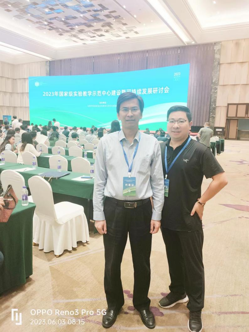 国家级实验教学示范中心联席会举办的2023年国家级实验教学示范中心建设暨可持续发展研讨会在杭州召开。副院长朱坤林、实验室主任吴成浩参加了本次研讨会。