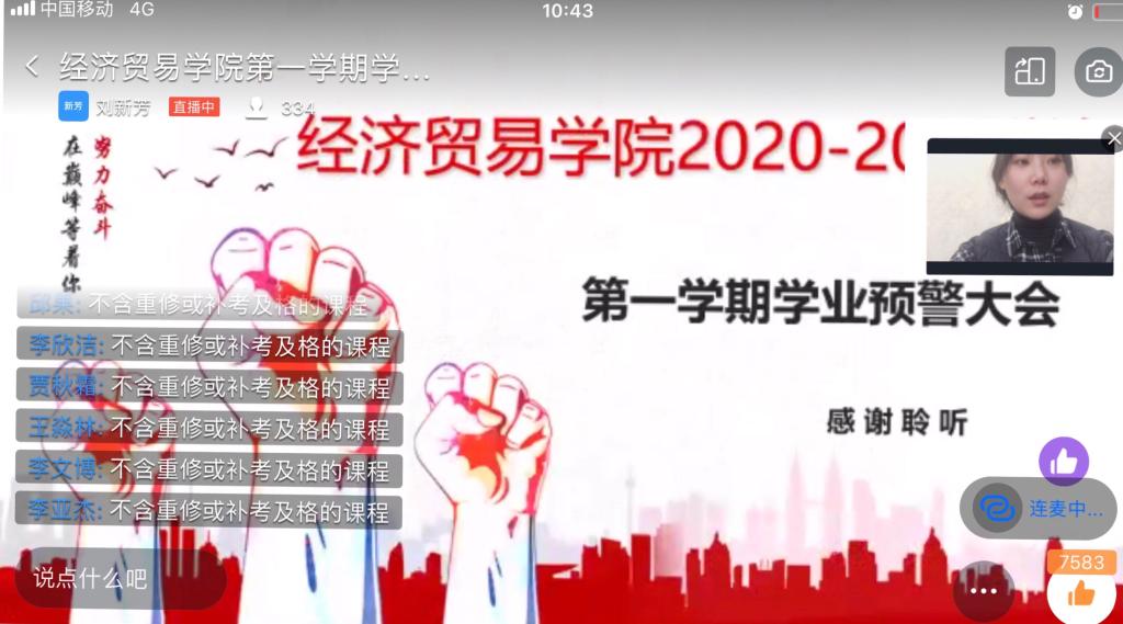 通过钉钉平台开展了第一学期学业预警大会。20级全体学生参加了此次会议,会议由团委负责人、20级辅导员孙玉涵主持。
