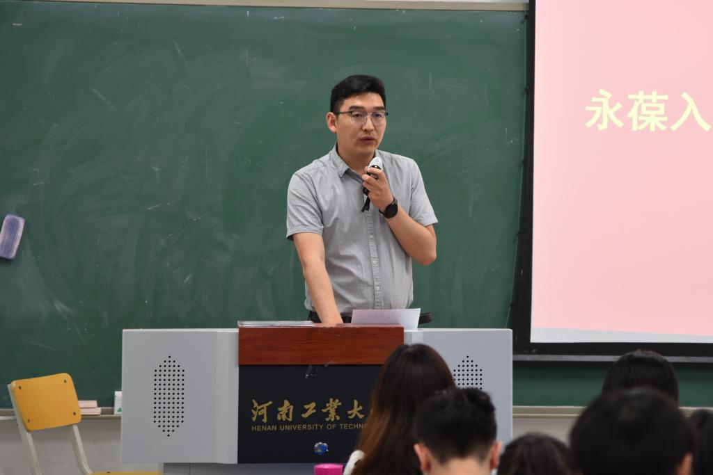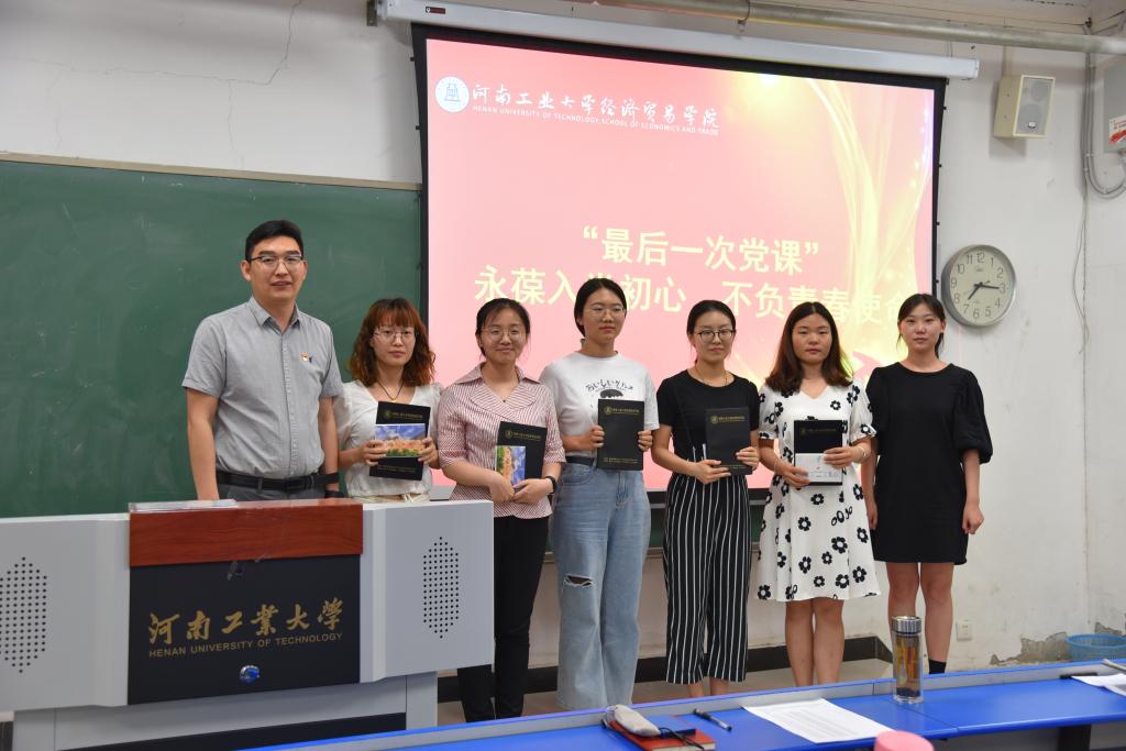 活动伊始,全体起立,奏唱国歌。在庄严的国歌之后,党员代表王辉带领党员们重温入党誓词。在一句句庄严的宣誓中,大家想起的不仅是刚入党时的初心,更是毕业后的使命、担当、责任。随后,王鹏以“在适合自己的人生路上为国家做出贡献”为主题,给全体毕业生党员上了专题党课。他对全体毕业生党员发挥“一名党员就是一面旗帜”的带头作用表达了衷心的感谢和欣慰,并向他们提出四点期望:一是坚定信念,对党忠诚,做讲政治、有信念的共产党员;二是遵纪守规,守牢底线,做讲规矩、有纪律的共产党员;三是立德修身,锤炼党性,做讲道德、有品行的共产党员;四是担当尽责,创先争优,做讲奉献、有作为的共产党员。