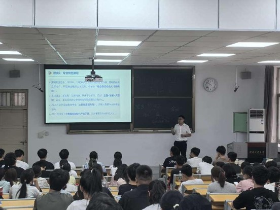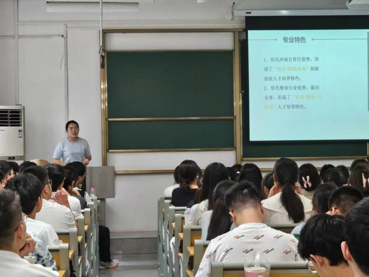 郭力首先介绍了四个经贸类专业的基本情况,展示了近年来专业人才培养方面的主要举措及成效,以及产教融合、教研融合、学创融合等方面特色。李进霞从教学管理的角度,向新生详细讲解了在学习过程中需要关注的重要环节,以及学生手册中关于学业方面的相关要求。吴成浩向新生强调了实验室的各项管理规定和上实验课需要注意的事项。随后,四个专业的负责人和骨干教师分别进行专业教育。老师们围绕专业发展历程、师资队伍、课程体系、学业发展规划、教育教学改革、就业和考研、创新创业竞赛等方面,向新生详细介绍了各个专业的特色与优势。