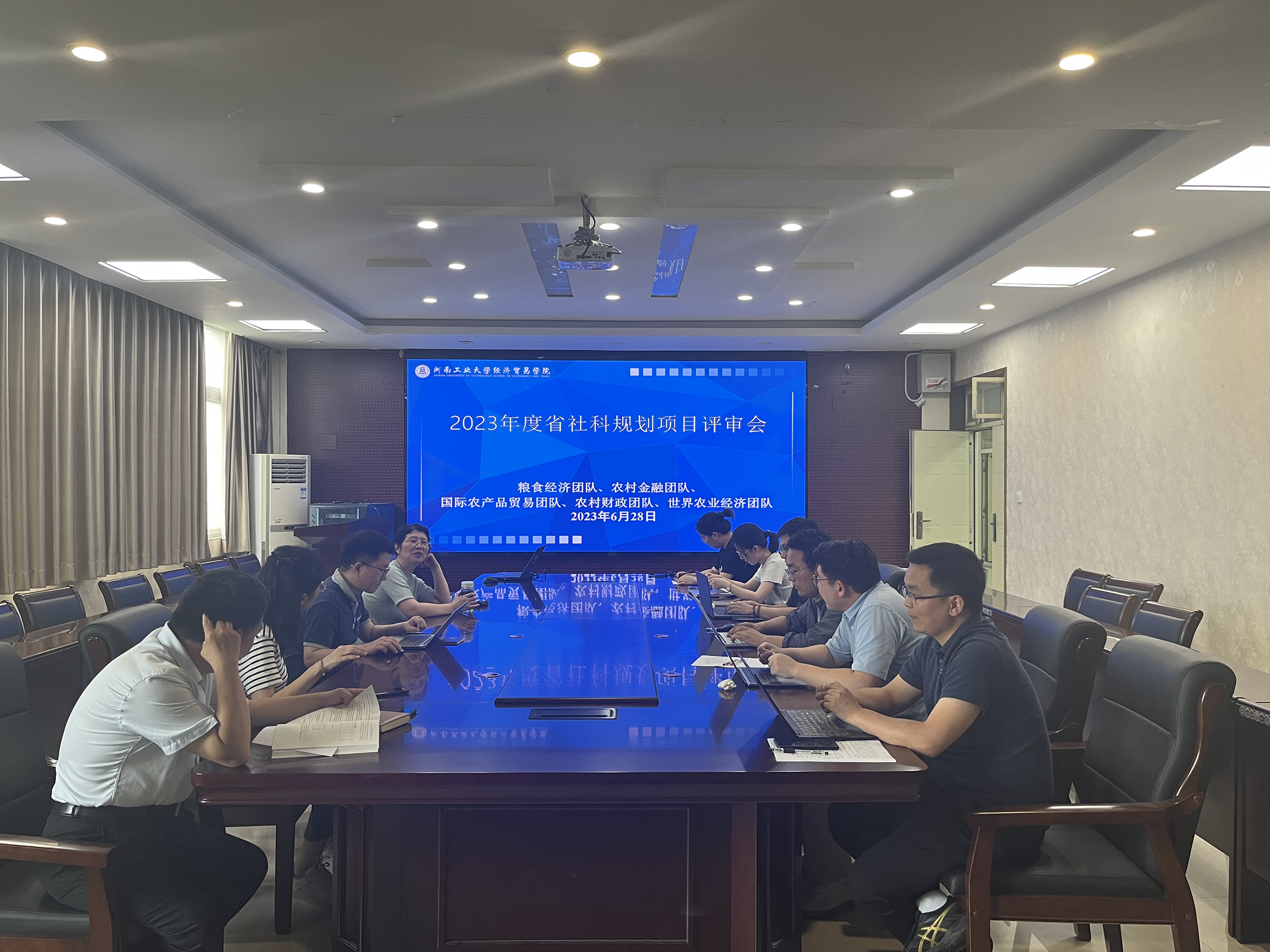 6月28日上午,星空体育 校级科研团队粮食经济、农村金融、国际农产品贸易、农村财政、世界农业经济团队在3501办公室召开2023年度省社科规划项目评审论证会,邀请星空体育 院长、粮食经济团队负责人孙中叶教授,农村财政团队负责人邓俊淼教授,国际农产品贸易负责人樊慧玲教授,农村金融团队王晓永博士担任论证专家,团队全体成员及星空体育 感兴趣师生参加会议。会议由孙中叶主持。