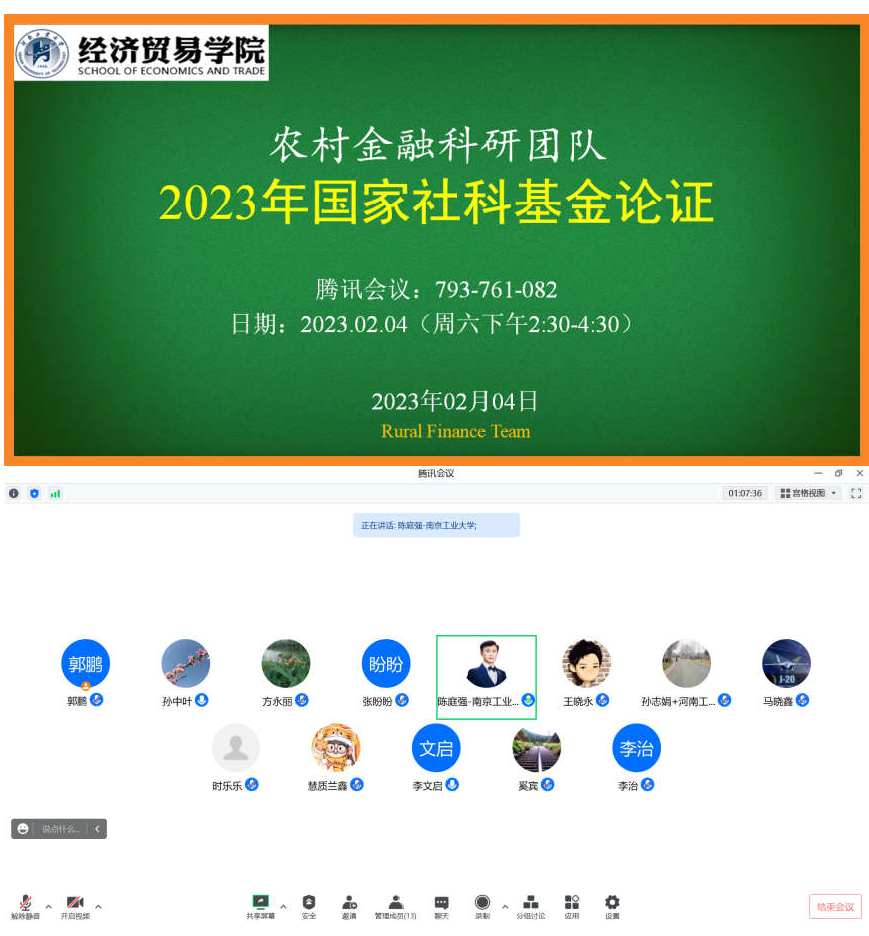 农村金融科研团队召开2023年国家社科基金论证会议,论证会邀请南京工业大学陈庭强教授莅临指导,星空体育