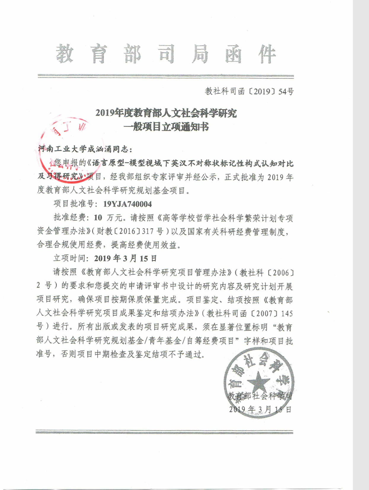教育部和其他部委社科项目——语言原型-模型视域下英汉不对称状标记性构式认知对比及习得研究