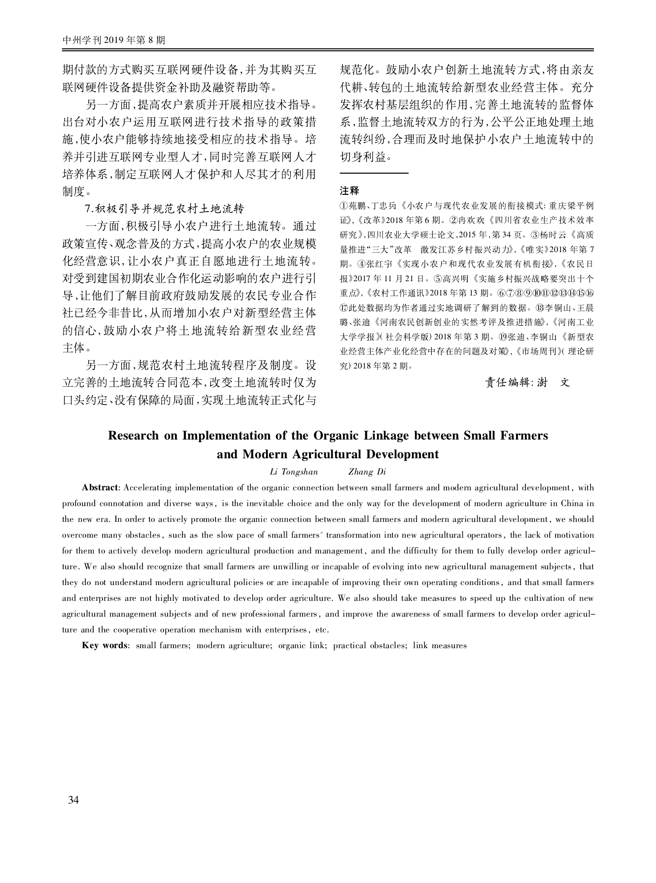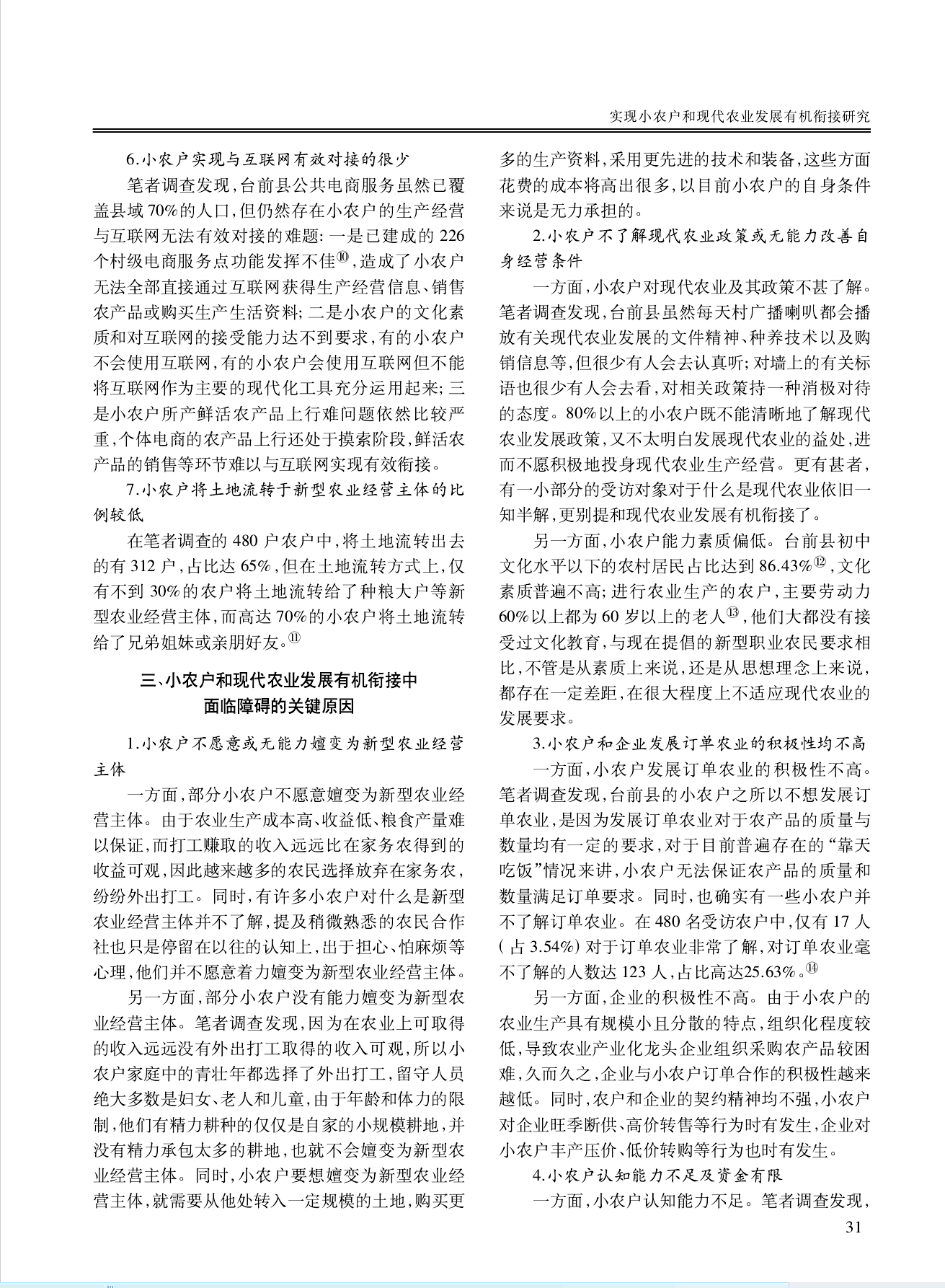 高水平论文3——实现小农户和现代农业发展有机衔接研究